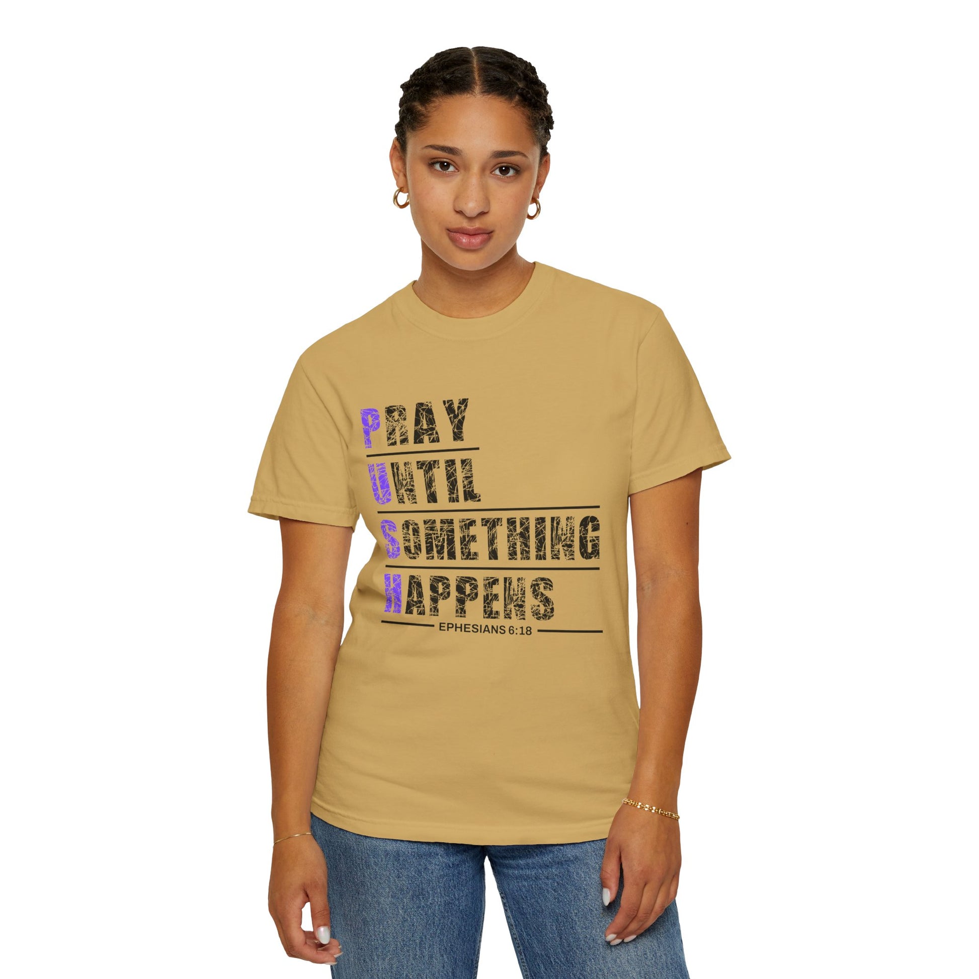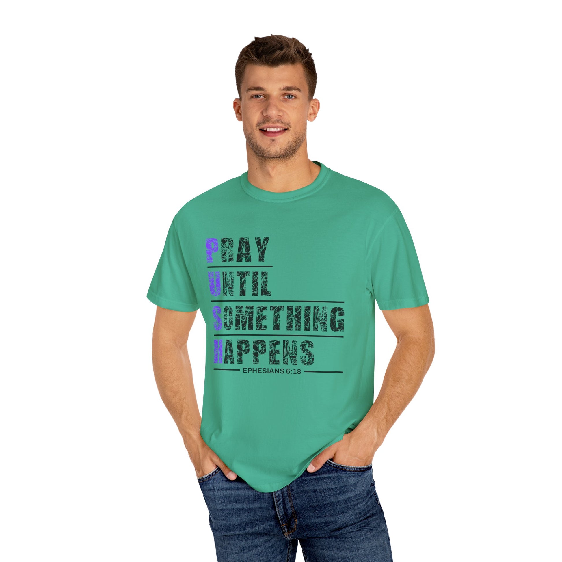 This unisex garment-dyed t-shirt exudes a relaxed, stylish vibe, perfect for everyday wear. Crafted from 100% ring-spun cotton, it offers exceptional comfort and durability, making it an ideal choice for both casual outings and laid-back gatherings. The soft, muted colors create a sense of calm, while the inspiring message on the front fosters motivation and positivity. Perfect for individuals who appreciate comfort and self-expression, it's a great fit for anyone looking to uplift their wardrobe. This versatile piece is particularly relevant for spiritual gatherings, community events, or gifts during the holiday season, making it an ideal choice for celebrations like Easter or personal milestones.