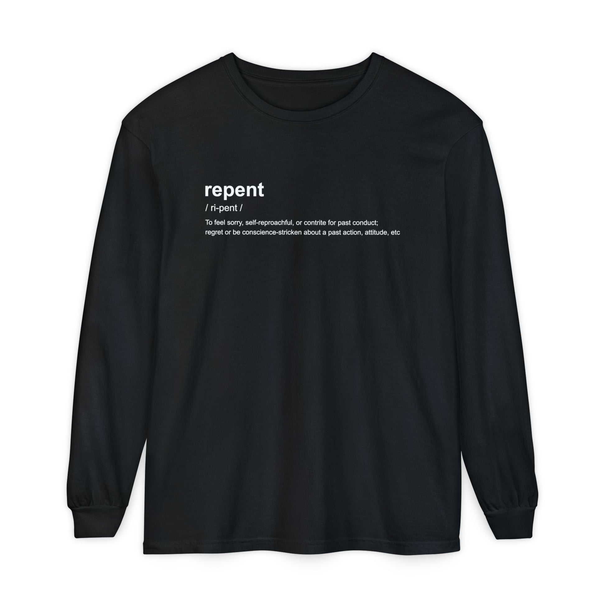 The Repent Comfort colors 6014 Long Sleeve T-Shirt offers a classic fit and medium fabric weight, making it perfect for everyday wear. Made from 100% ring-spun cotton with garment-dyed fabric, this shirt is soft, durable, and comfortable. The double needle sleeve and bottom hems, ribbed-knit cuffs, and neck and shoulder tape ensure quality craftsmanship. Ideal for adults, this shirt is versatile and great for casual wear or as a holiday gift.